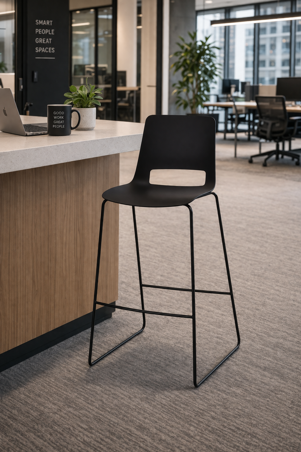 The Bourne Stool is available with a super comfortable polypropylene shell or alternatively upholstered in your choice of fabric or leather. Die-cast aluminum, steel and timber bases are available in powder-coated, polished and stained finishes.