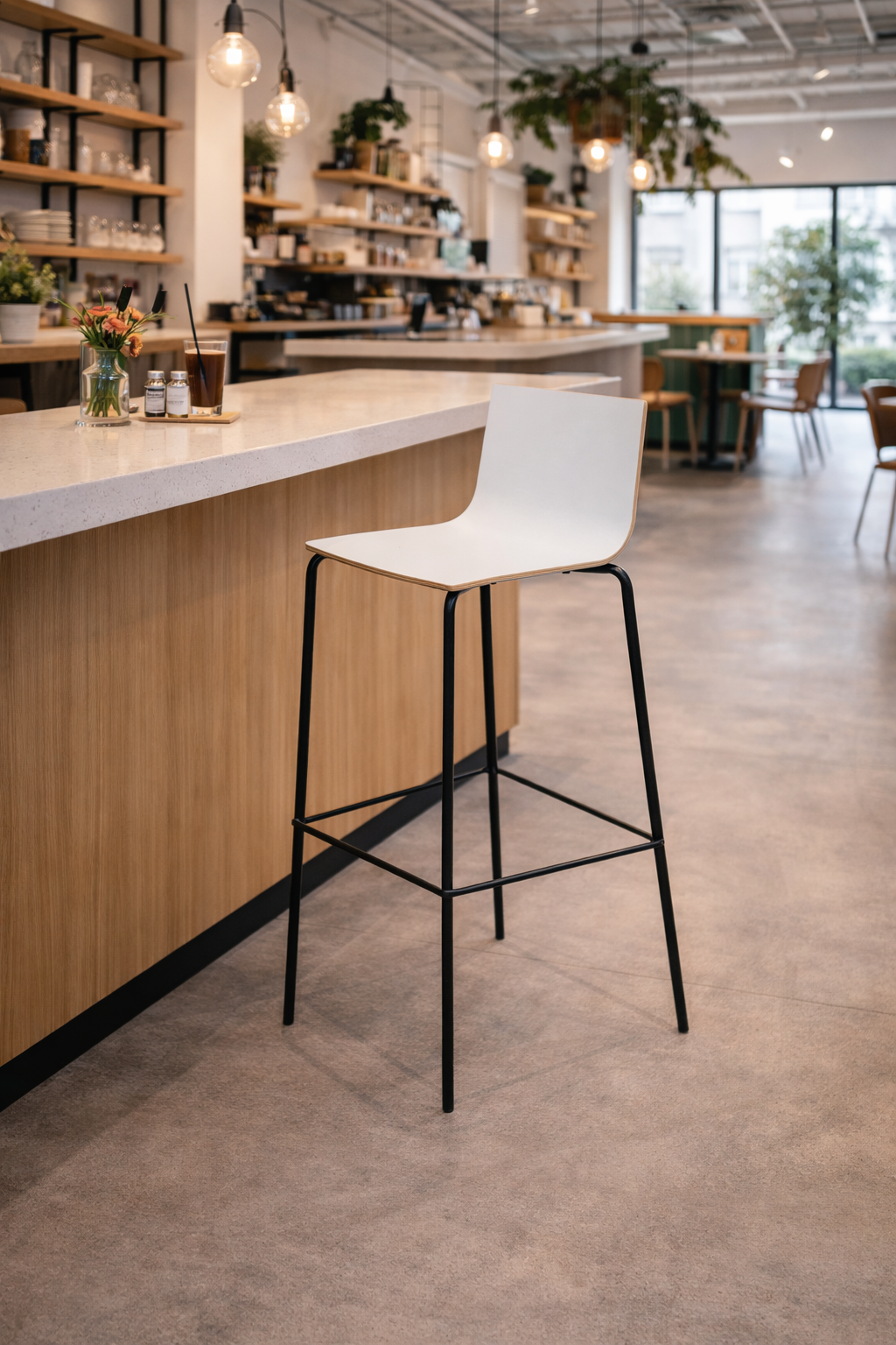 - Solid metal rod frame with inbuilt foot rest