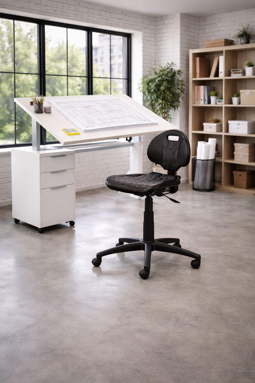 The Typist Industrial is ideal for a Commercial, Warehouse or Industrial environment. With a polyurethane seat and back and black nylon base it is a sturdy option. The semi or full ergo mechanism and manual seat lock means it is not only practical but comfortable.