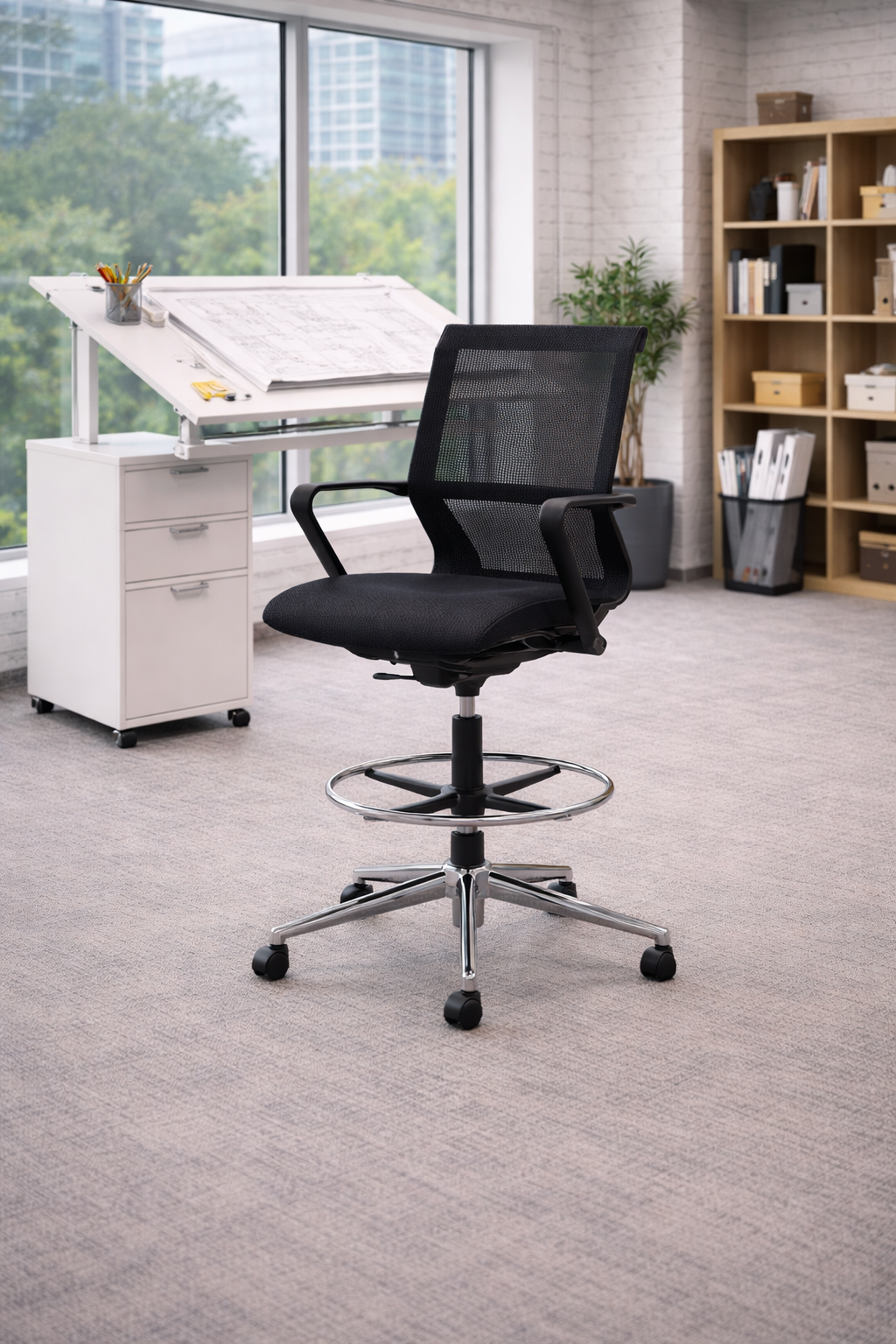 The Ellin Drafting Chair 2 has a stunning design, exquisite curves and practical function come together in this beautiful all-round package.