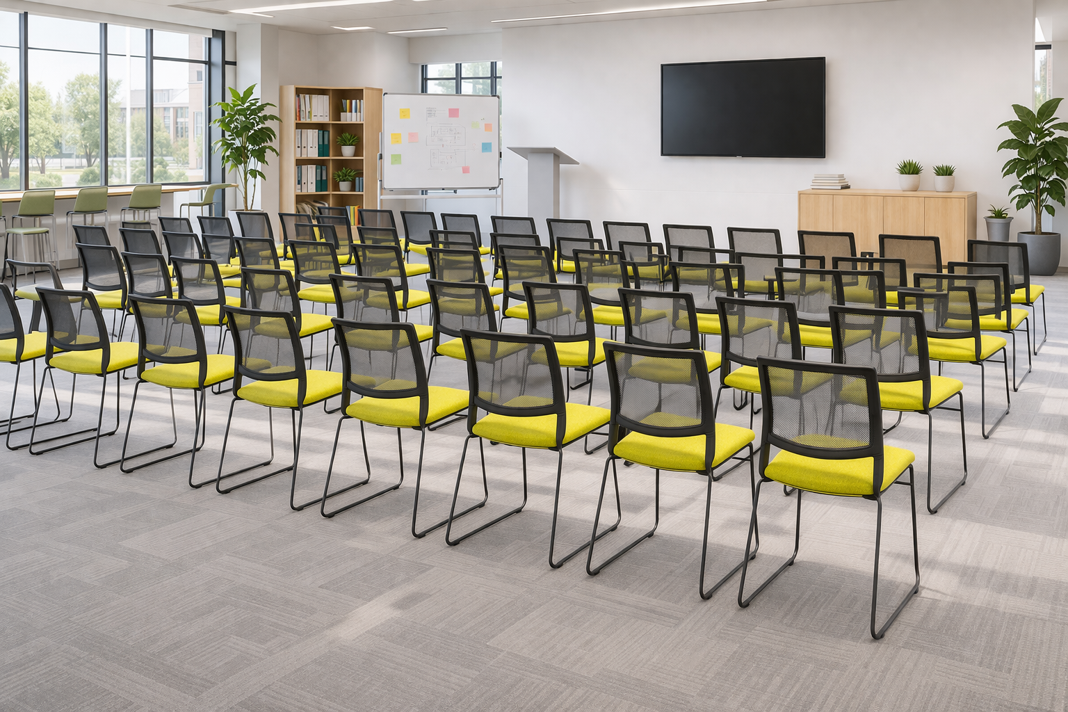 Keily Mesh Chair combines the latest in design elements with newest technology. This creates a truly functional and aesthetically pleasing visitor or conference chair. Seat and back plastic, 100% recyclable polypropylene injection, with the seat able to be upholstered. Slim powder coated sled frame standard with linking, stacking for high functionality.