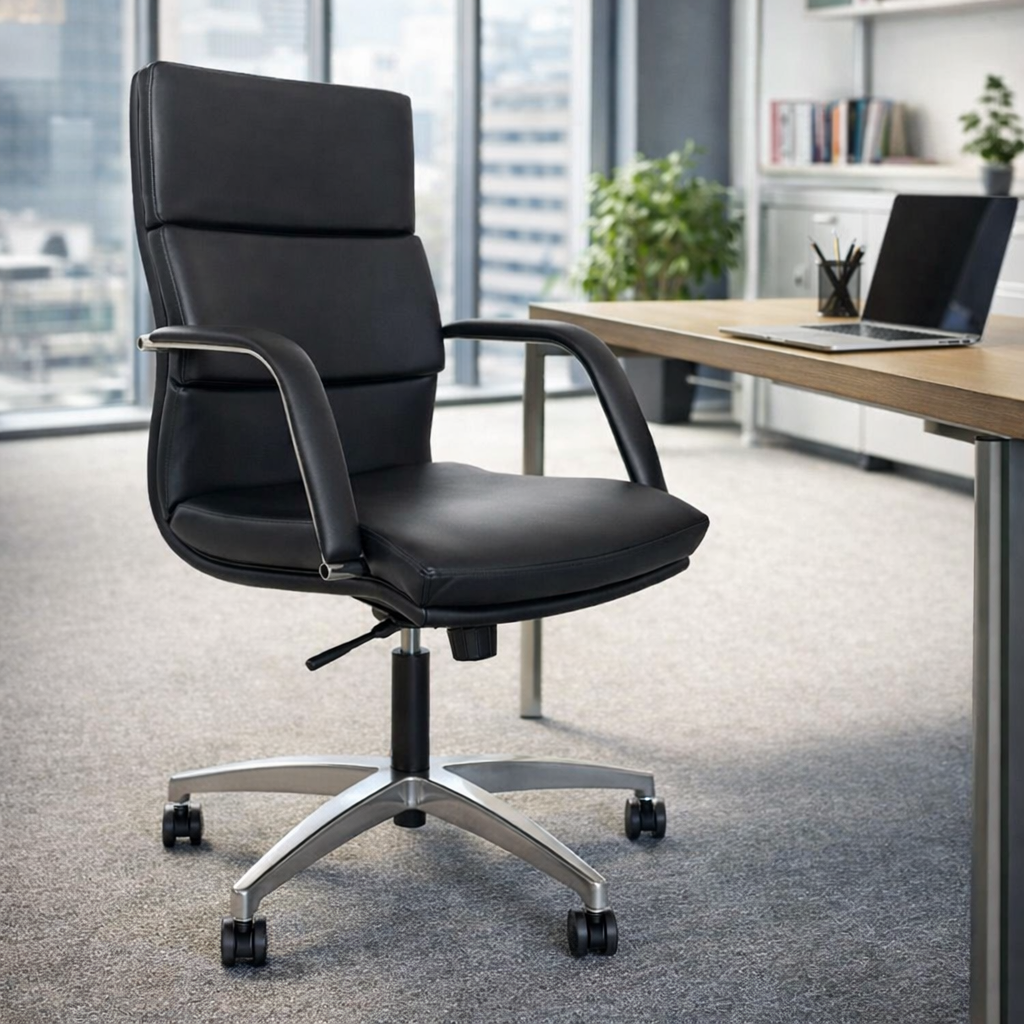 The Mirri Executive chair features soft back panels with square line back.
