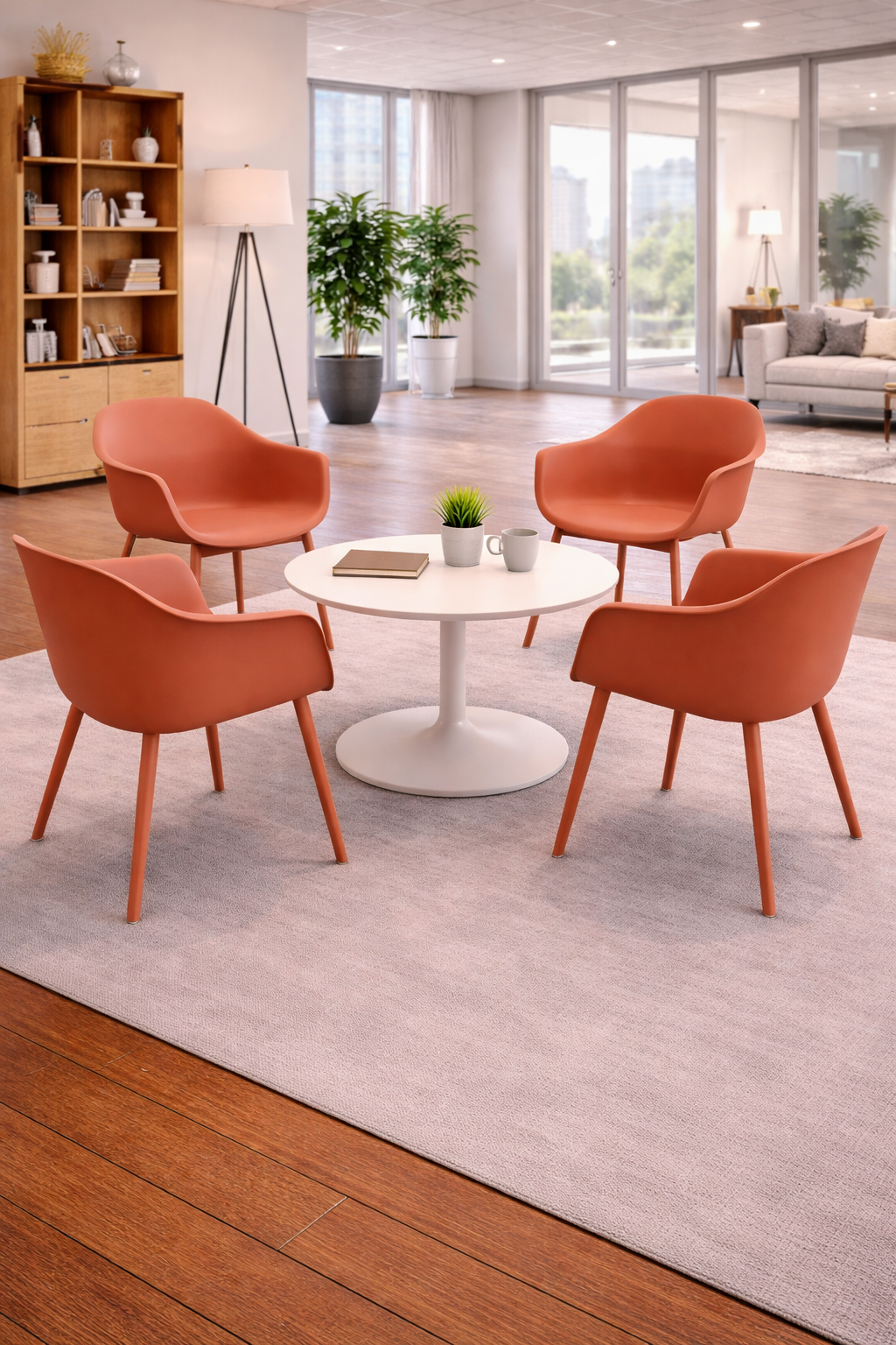 A generously proportioned chair, suitable for both indoor and outdoor use. Available in three unique polypropylene colours with matching steel bases, the Plateau Meeting Chair 2 makes an impression with its solid tones and distinctive silhouette.