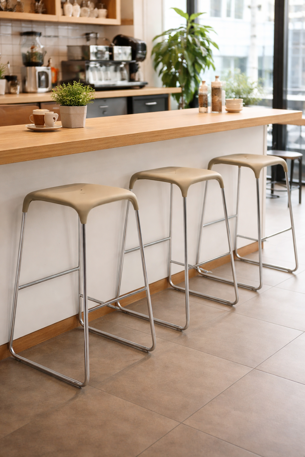 The Blyss Stool 1 stool features a steel frame and is available in two seat heights.